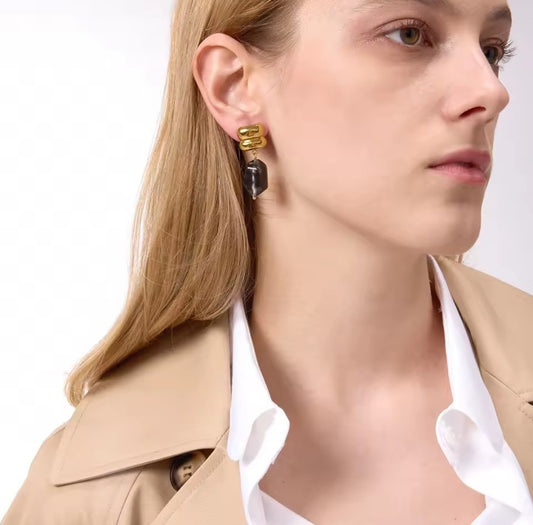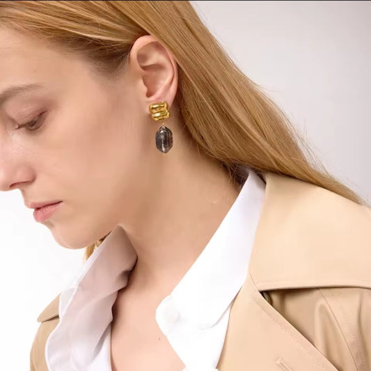 Goldene Statement-Ohrringe mit schwarzem Marmor-Tropfen – Edelstahl