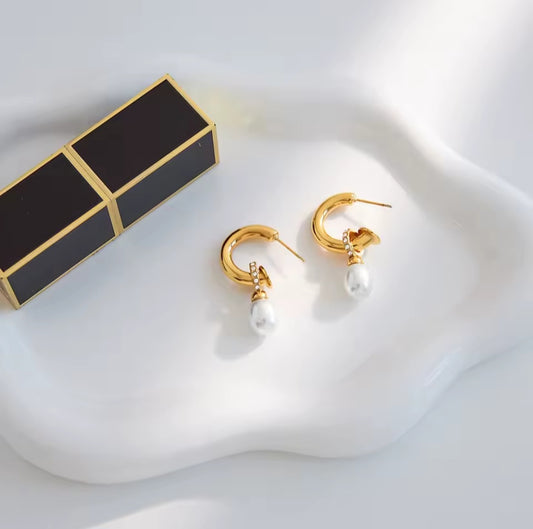Goldene Perlen-Creolen aus Edelstahl | 18K vergoldet