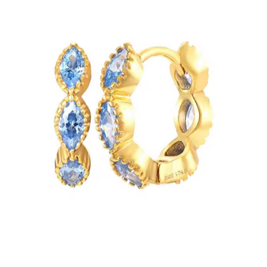 Vergoldete Huggie-Creolen – Set mit lila, blauen & schwarzen Zirkonia