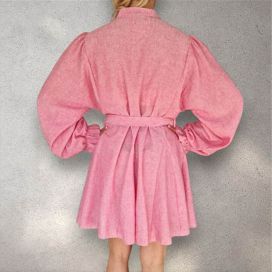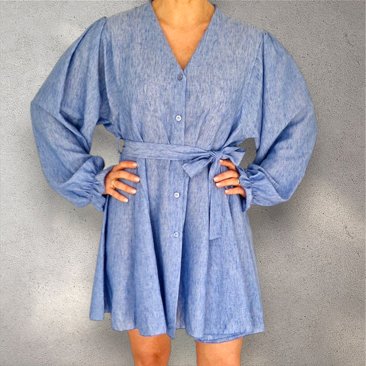 Leichtes Kleid mit Gürtel – Leinenoptik